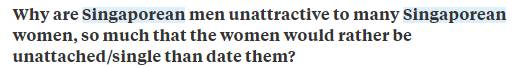 为啥新加坡男人对女人没有吸引力,以至于她们宁愿单身?