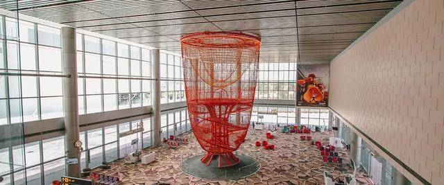 如果你在转机的途中听到一阵惊叫声,那一定是有人在体验时速6m/s的巨大金属滑滑梯。它可是全球机场里最高、最快的滑道哟!有四层楼那么高。