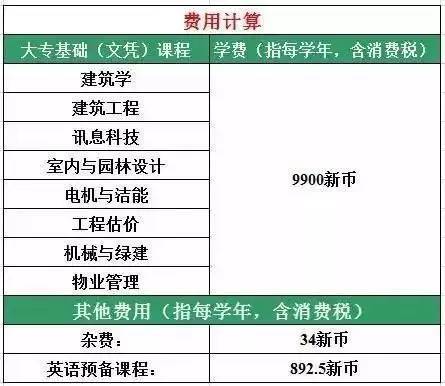 留学费用:学制3年,生活费约5万人民币/年,学费9900新币/年(约人民币4.8万元),如享受助学金或奖学金计划的学生可获学费减免。
