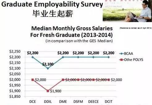 新加坡官方统计信息,建筑学院(BCAA)的6个专业毕业生(2013至2014年)与理工学院同类专业毕业生工资的比较,建筑学院(BCAA) 的毕业生的起薪甚至比理工学院(Poly)稍微200新币左右。业内人士认为建学学院(BCAA)的优势在于其人才培养的专业性及对口性,使得其毕业生在步入社会后更有竞争力。