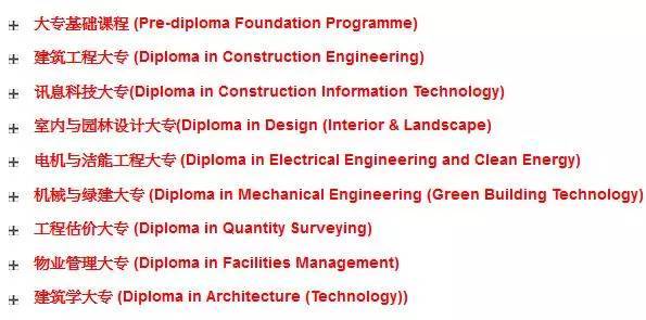3.建筑工程大专 (Diploma in Construction Engineering),这一课程旨在让学生掌握建筑业内最新科学技术,并将专业监督、管理和财务知识用于企业管理中,毕业生能够胜任以下职位:常驻技术员、助理项目工程师、助理设计工程师、施工现场工程师、销售执行员等。