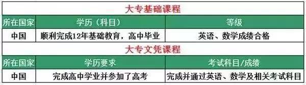 2.中国高中毕业并参加高考,通过考试后,可免读大专基础课程,直接读大专文凭课程。
