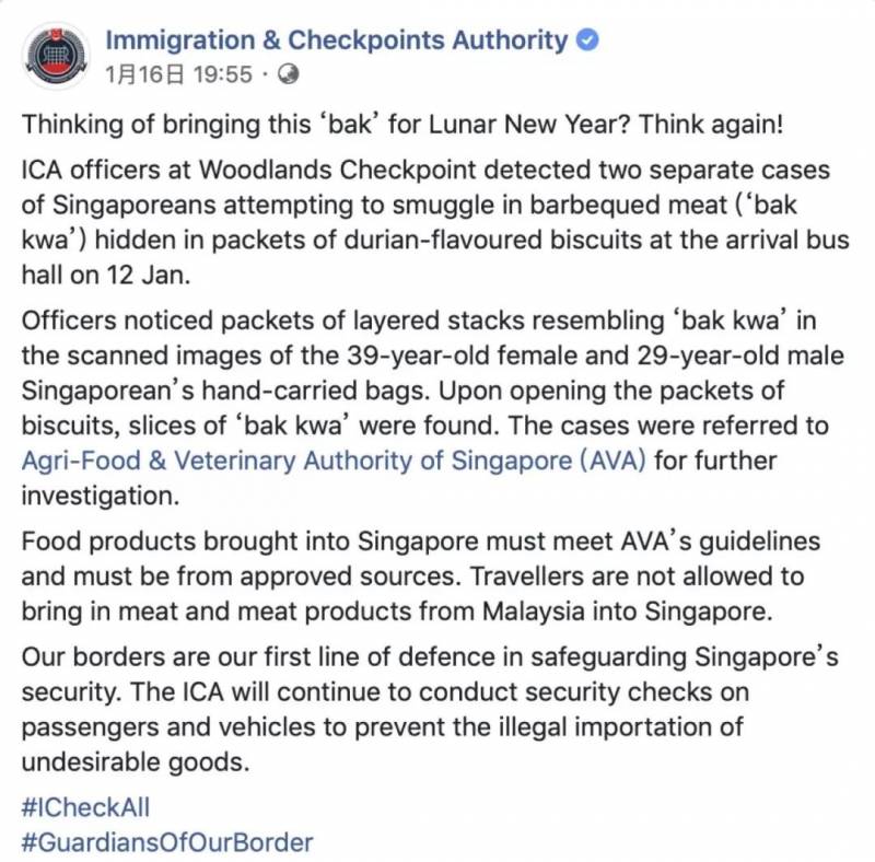 腊肠、鸡鸭鹅等,均不可带入新加坡境内