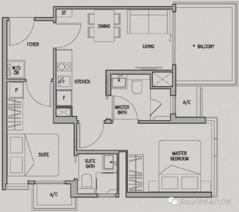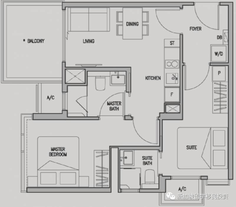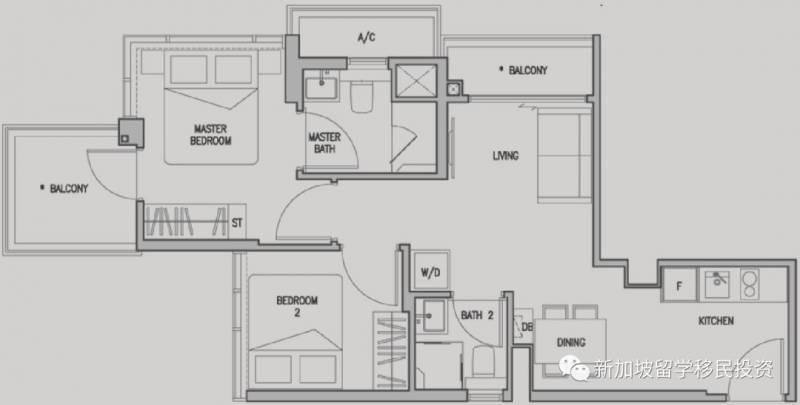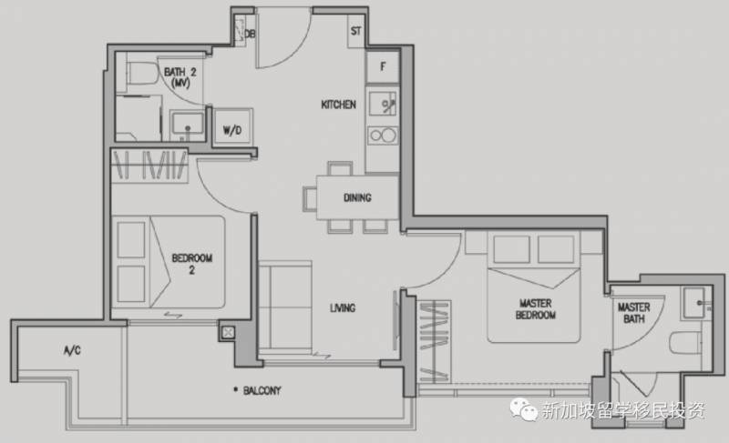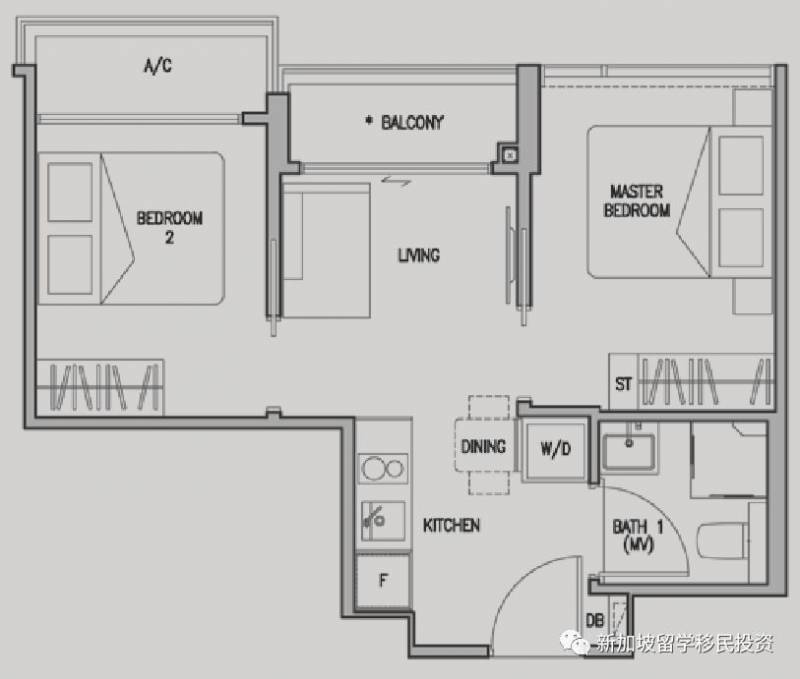 B2户型 2室 Premium 603平方英尺 / 56平方米