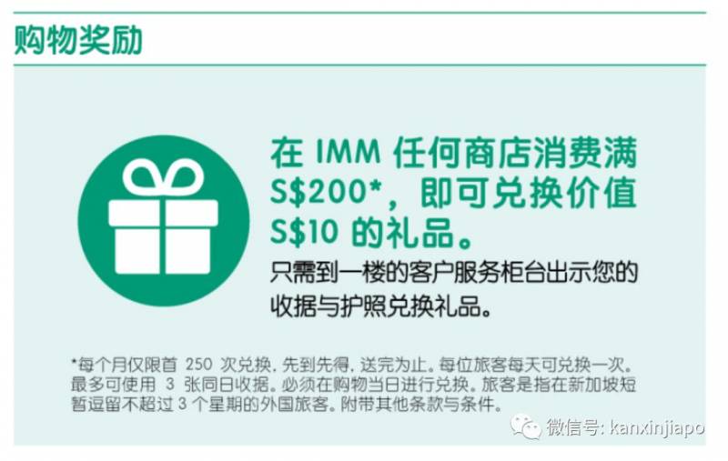 记得一定随身携带护照,在任意一家品牌店购物满S$100即可办理退税。消费满S$200,即可到一楼的客户服务台兑换S$10的礼品。