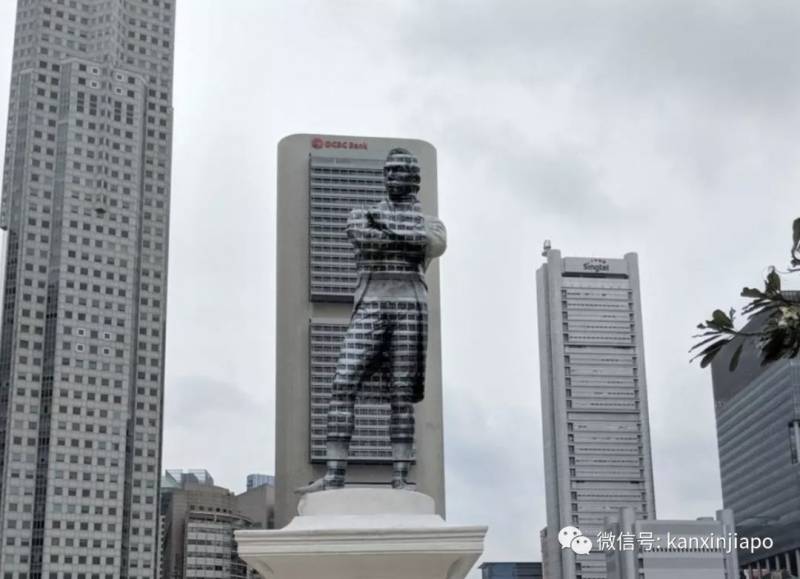 10年后,为了纪念开埠200周年,新加坡河畔的莱佛士雕像披上了隐形外衣~