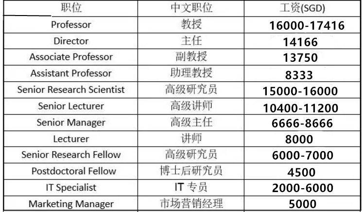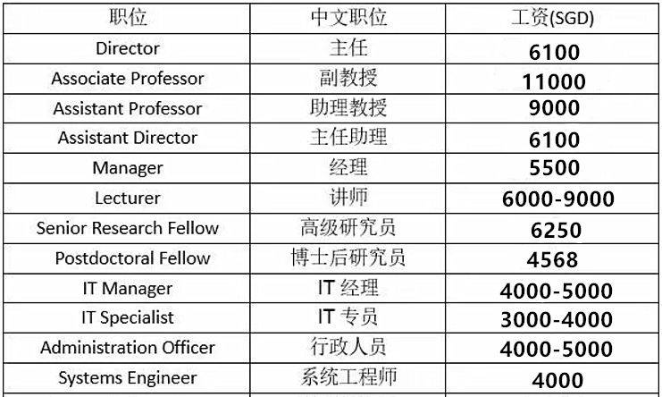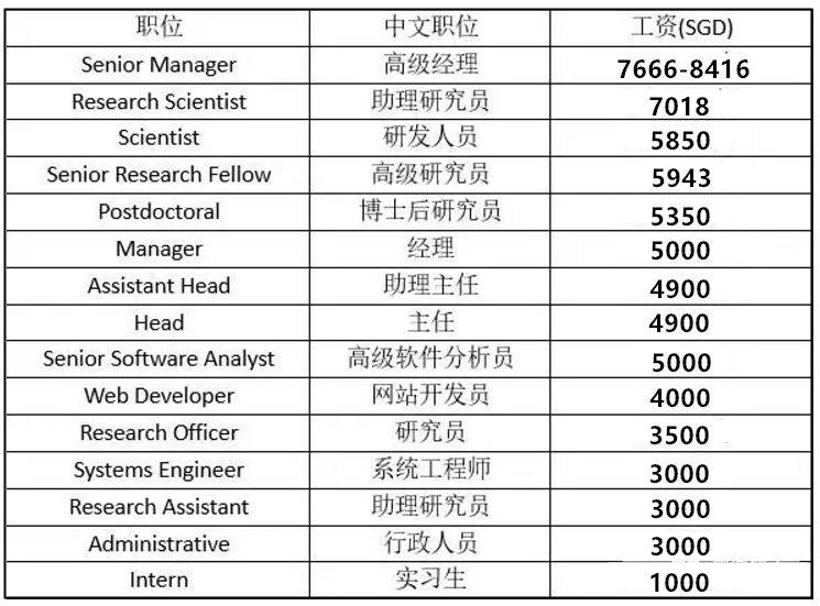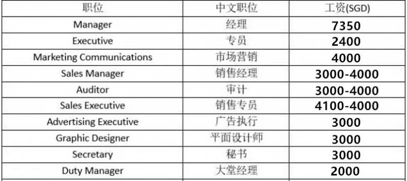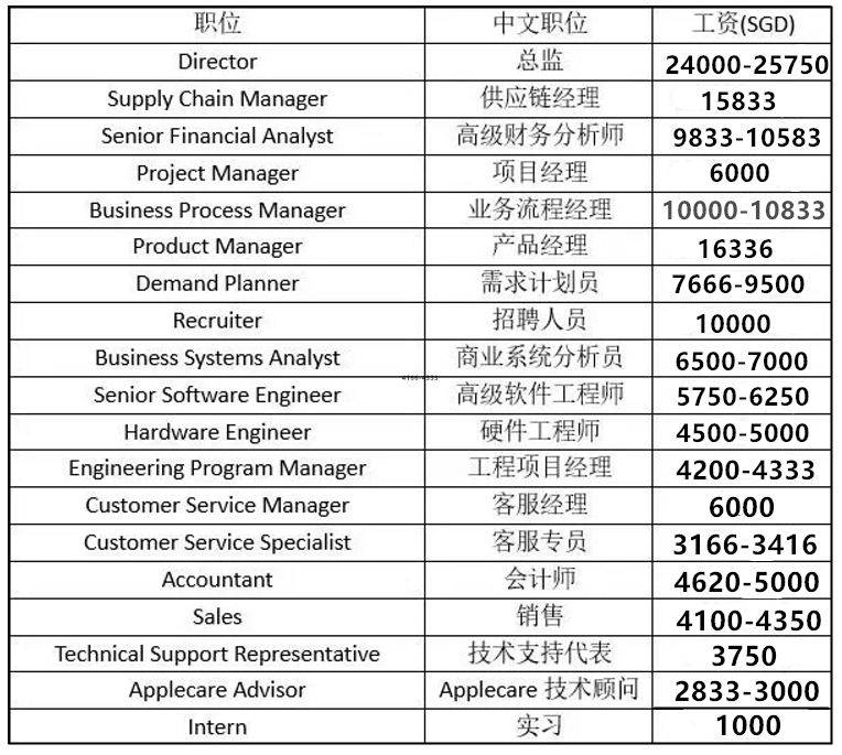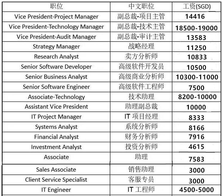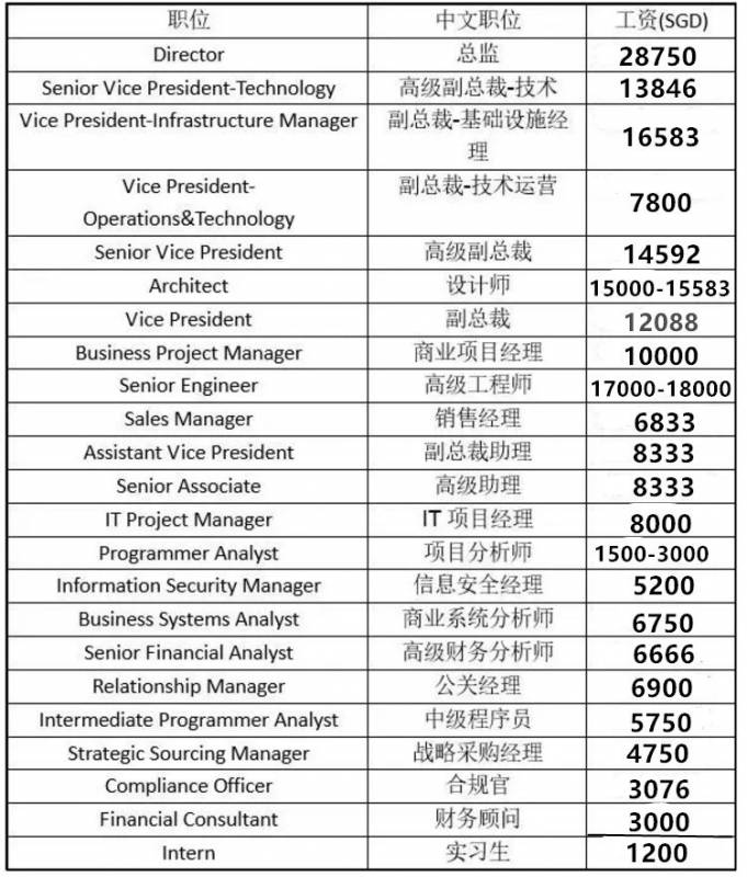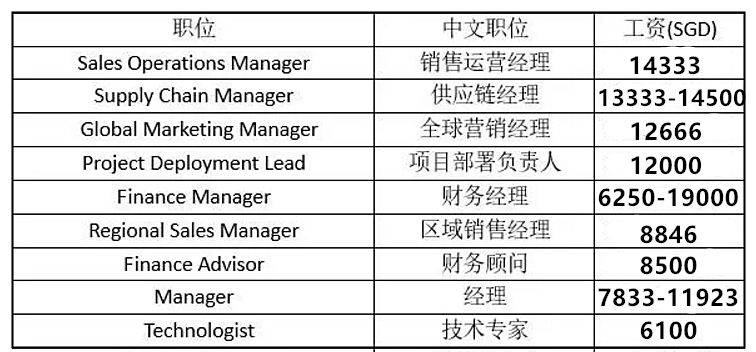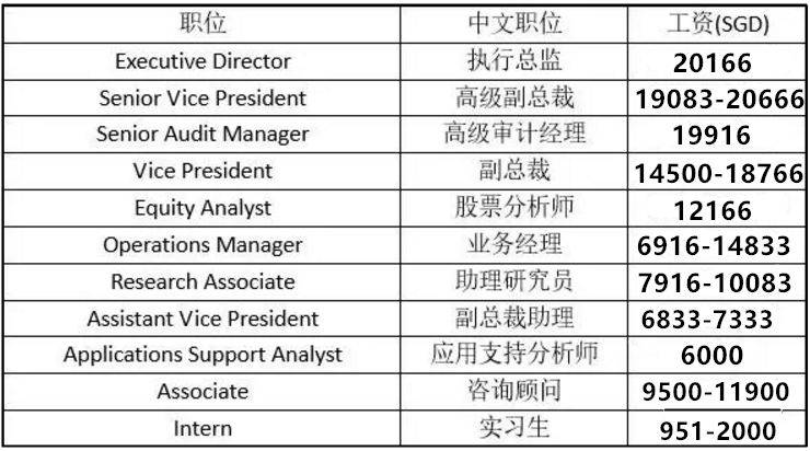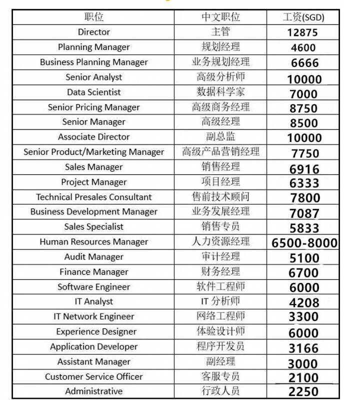 *(以上新加坡部分数据主要来源于Glassdoor,仅供参考)