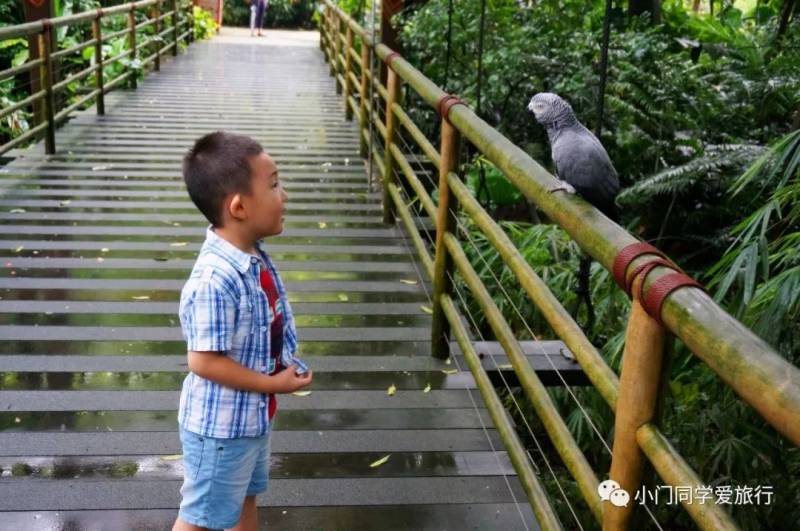 裕廊飞禽公园和另三个动物园不在一起,坐落在西部的裕廊山上,所以这里更像是个大型的热带雨林。我们到达的时候下着大雨,只好先坐游览车。后来运气好,雨停了,雨林里空气湿湿的更舒服了。