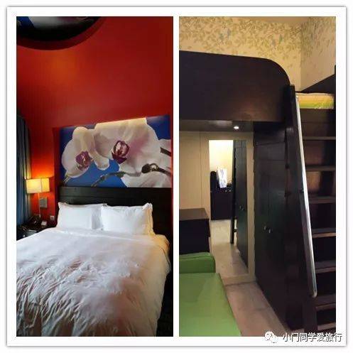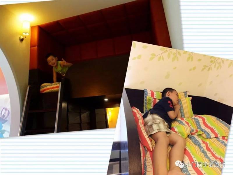 节庆酒店色彩明快,说不上多豪华,最大的特点就是他的家庭房:一张双人床、一个上下床(下面是沙发床)。小孩儿都喜欢爬到上铺有个自己的小小空间,所以这给小门同学留下了炒鸡深刻的印象,也是我们两次都住在这里的原因。