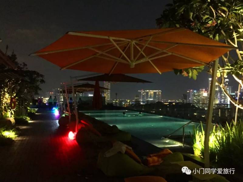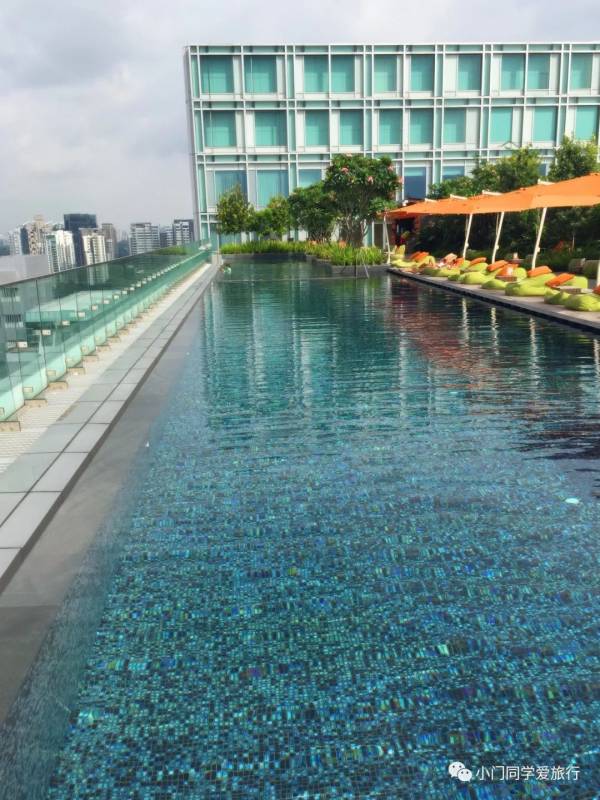 酒店在乌节门商场的楼上,B2是索美塞Somerset地铁站(距离超级换乘站多美歌Dhoby Ghaut仅一站),一层有7-11和新加坡国民早餐店“亚坤”。前台在10层,泳池在19层,小小的泳池自然是比不了金沙,但景色也不错,而且还没人,完全可以满足小门同学偶尔耍一耍。