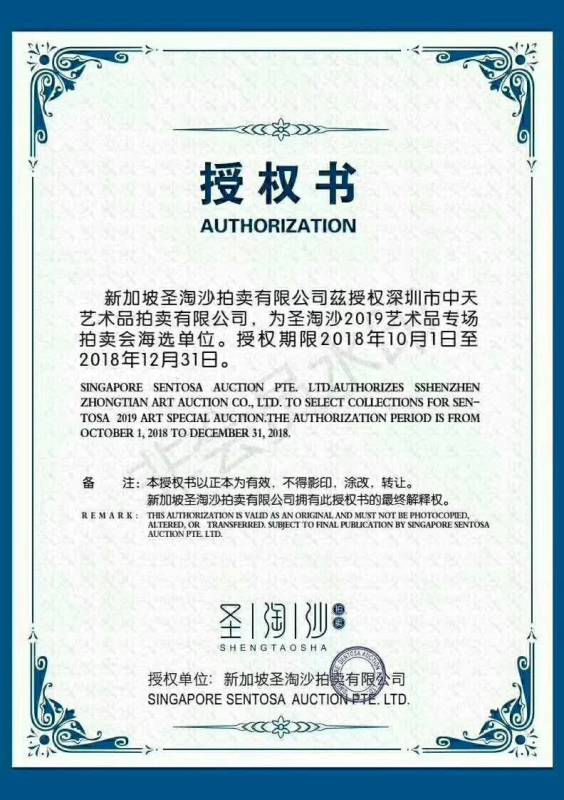 新加坡圣淘沙拍卖有限公司是一个得到新加坡政府批准审计和注册的大型综合性拍卖公司。公司植根于国际文化艺术收藏,与欧洲、日本、美国和其他国际知名艺术机构合作。