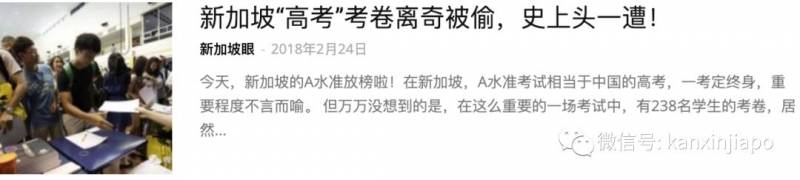 无独有偶,2017年的新加坡的A水准考试中,也有238名学生的考卷,居然莫名其妙地被!偷!了!