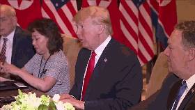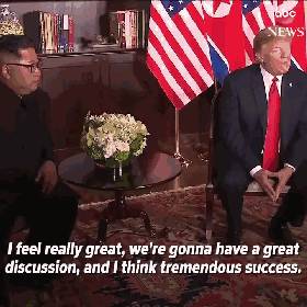 两人闭门交谈了足足有40分钟左右!出来后,被大家问及“交谈怎么样?”,特朗普表示“非常非常好,两人有着极好的关系!”而金正恩也表示,来到这里不容易。历史扯了我们的后腿,过去的偏见和做法也阻挡我们前进。但这些我们全都克服了,而我们今天来到了这里。虽然极具挑战性,但我们愿意和特朗普紧密合作!