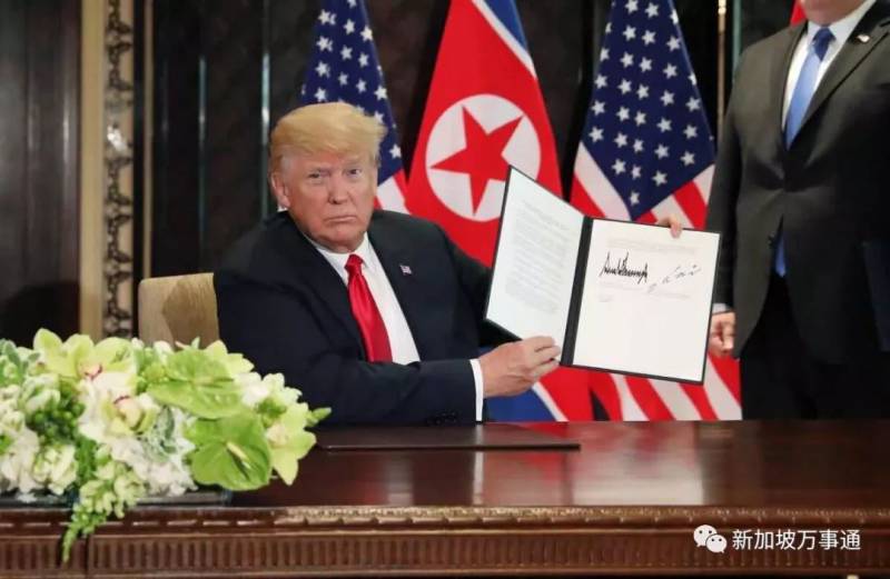 之后,特朗普和金正恩出席了签字仪式,特朗普表示自己将和金正恩签署一份文件,特朗普表示,这是一份非常重要的文件,也非常全面。