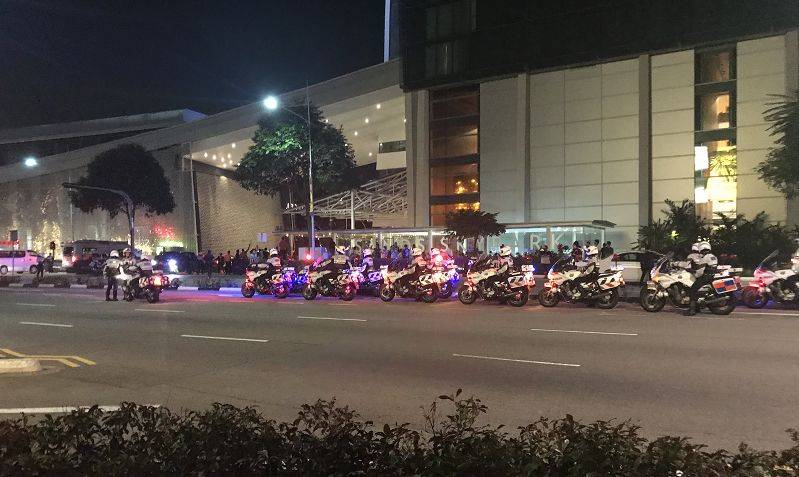 除了瑞吉酒店,美国总统特朗普下榻的香格里拉酒店,也是“严防死守”的景象。