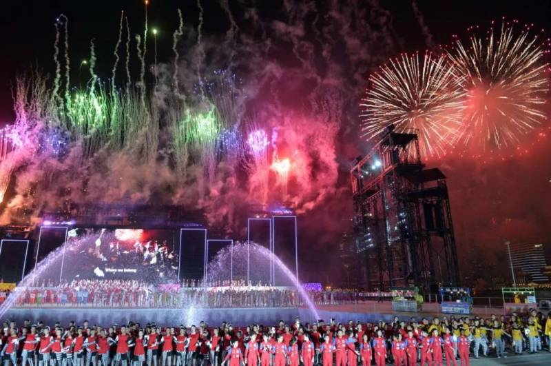 这一标志性的活动滨海湾浮动舞台举行