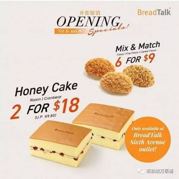 Breadtalk的蜂蜜蛋糕相当美味了~现在为庆祝新店开张还有促销折扣,赶紧去下手哦!