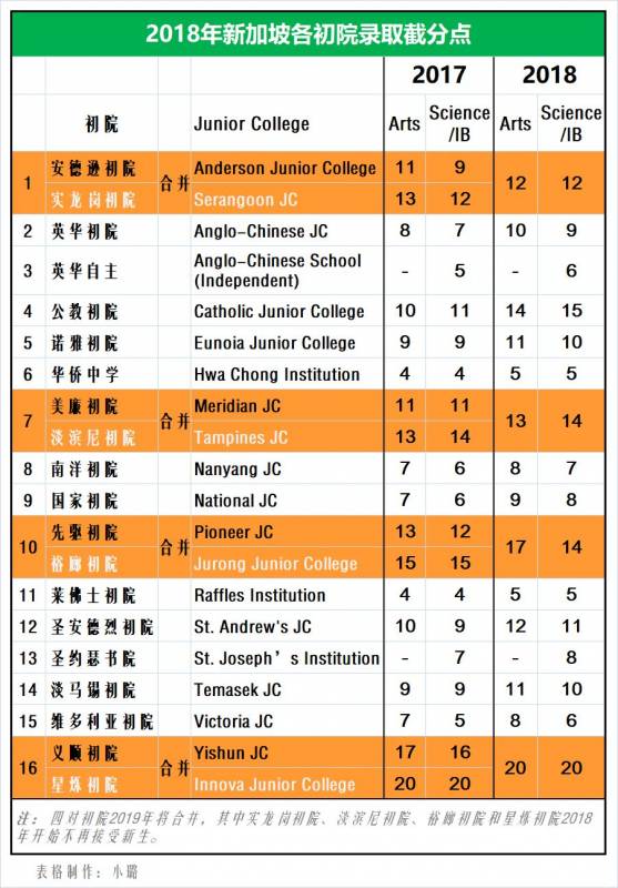 以下为新加坡前年及去年各初院的录取截分点,可供报名时作为参考。