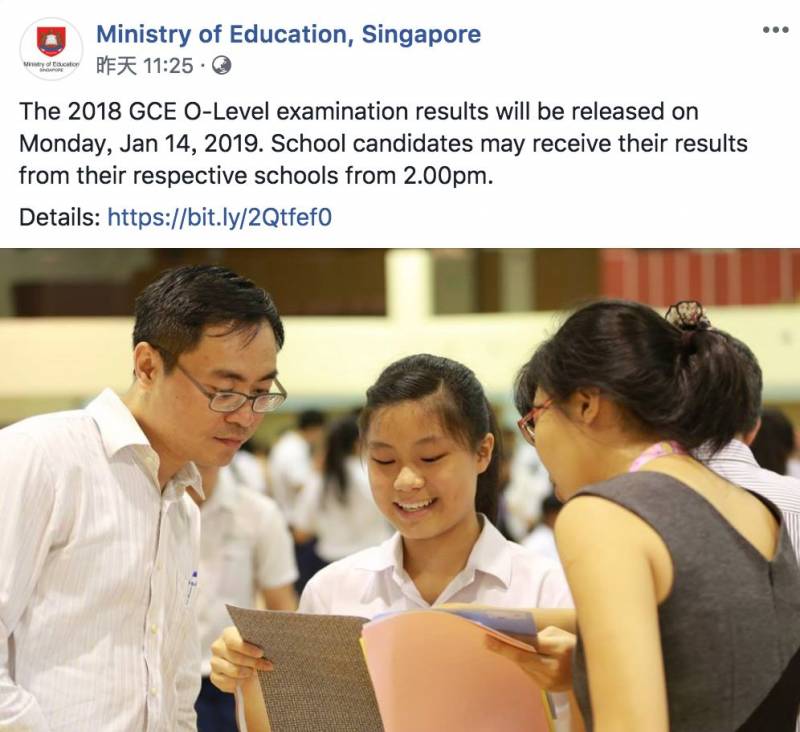 2018年新加坡O水准的会考成绩将在下周一(1月14日)放榜。