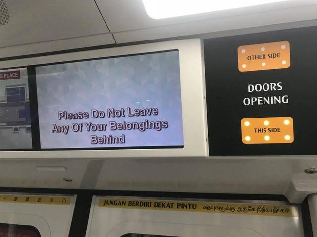 和国内花花绿绿的地铁不同,在新加坡的地铁和公交车厢内,我们几乎看不到一个和消费有关的,取而代之的,是地铁标语,以及一些防偷盗等行为的警示语——新加坡户外的商业色彩特别淡,不过度宣扬消费,似乎是他们的价值观共识。