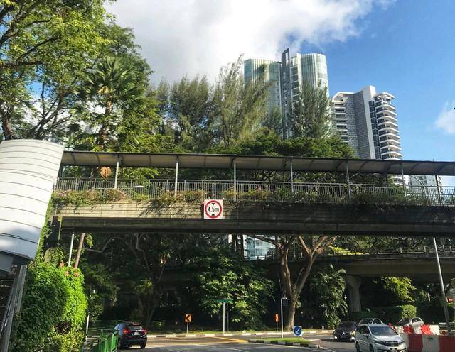尽管香港也有很高的绿地覆蓋率,但绿地与城市生活分得很开,湾仔和尖沙咀几乎寸草不生,只有密集的大厦。而在新加坡,连过街天桥这样的特殊空间都有绿植。朋友笑说,在新加坡视力和呼吸病都快治好了。