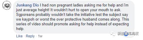 我个子虽不高但经常有没怀孕的女士找我帮忙。开口问一问又不会掉一块肉。新加坡人通常不会主动问这些孕妇,怕被孕妇骂kaypoh(多管闲事),最糟的是遇到过于保护的丈夫跑过来。我觉得这个系列的视频应该提倡:主动开口找人帮忙,而不是等着他人来帮你。