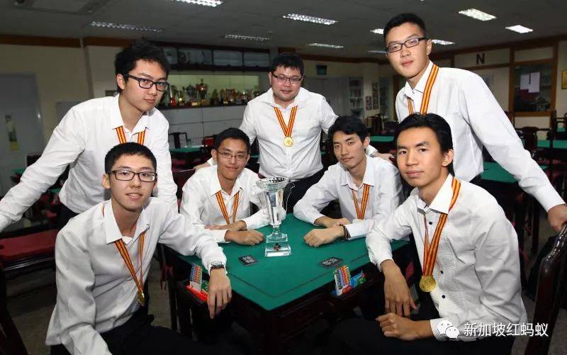 2014年,李韶武(前排坐者左二)和队友及领队代表新加坡,参加在中国浙江举行的第二届亚洲杯桥牌锦标赛,夺得20岁以下青年组冠军。(联合早报)