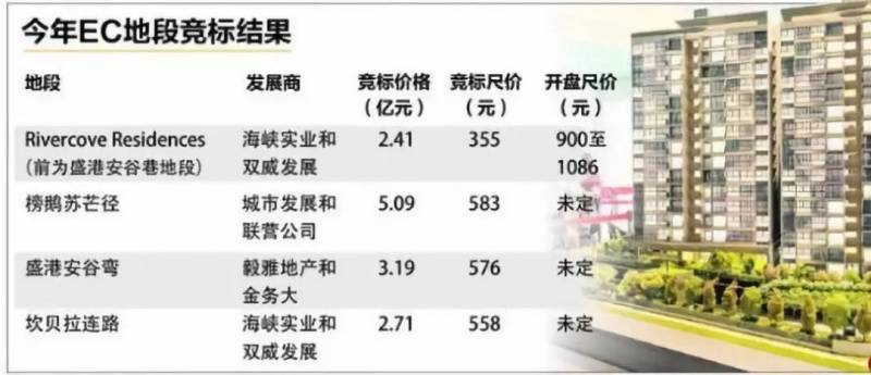 其中地价最便宜的EC项目:Rivercove Residences,均价已在1000新币每尺左右,并已售罄。