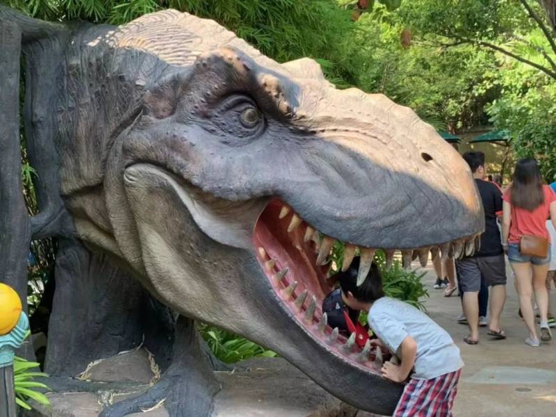 在环球影城中,随处都可以摆拍,啊啊啊!恐龙出没,小心被“生吞”!