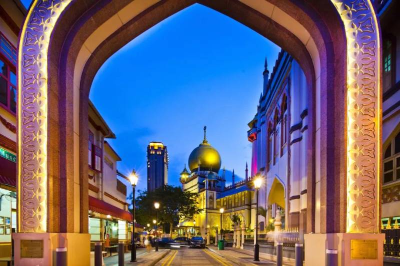 这条古老的街道上栽满了高大的棕榈树,远远的就能看到苏丹回教堂金色的圆顶,阳光下熠熠生辉。走在阿拉伯街上,可以领略到阿拉伯、巴格达的中东风情,还能品尝到阿拉伯美食哦~