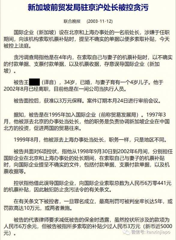 一个最大的问题是,W在驻北京和驻上海总领馆工作期间,多次报销机票有问题。细节就不说了,看看当年新加坡《联合晚报》的报道就知道大概了: