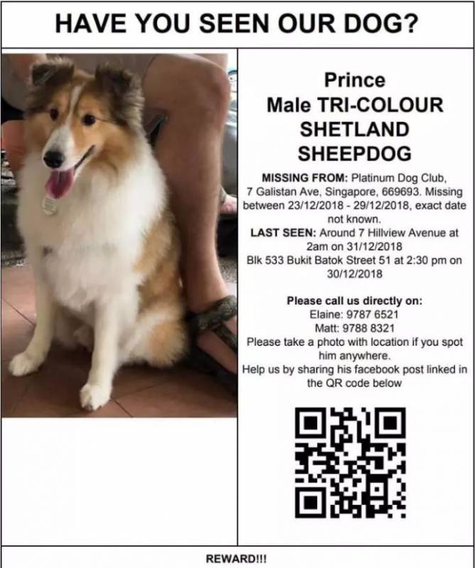 就在几天后,突然接到宠物宾馆工作人员通知称,因农业食品兽医局(AVA)的闯入,导致Prince受惊出逃。