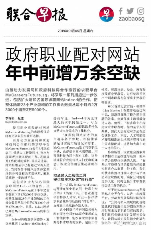 新年刚一过,就业市场一片大好,根据媒体报道,新加坡的政府的官方职业匹配平台Job Bank(新加坡工作库)数据显示,新加坡职场空额总数激增过万,2019年1月的就业市场有近35000个职位空缺,使得新加坡的“人荒”更严重了!!!