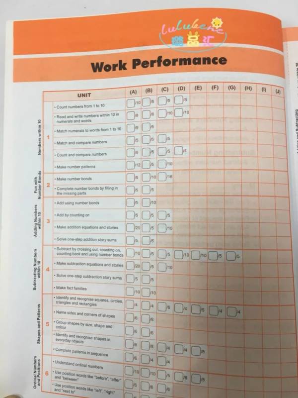 之后就是目录页,目录页之后就是Work Performance 学习表现评估表,家长们可以根据孩子做作业的评分给他们打分。
