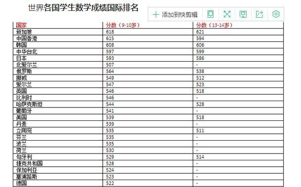 国际教育成就评测协会(IEA)进行的“国际数学和科学评测趋势”(TIMSS)中,新加坡孩子的数学综合成绩都遥遥领先,排名第一。
