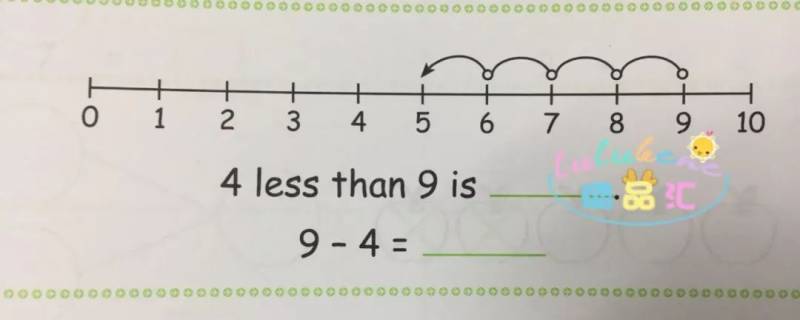 4比9少多少呢?通过画长长的线段,每一个线段代表一个数字,很形象直观地通过数格子的方式就能够一目了然地得到答案。