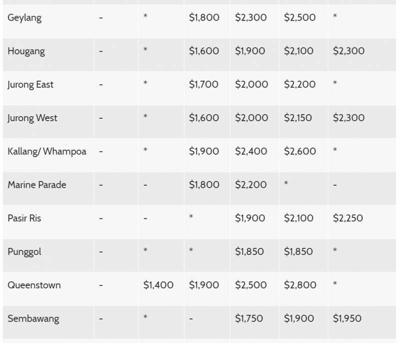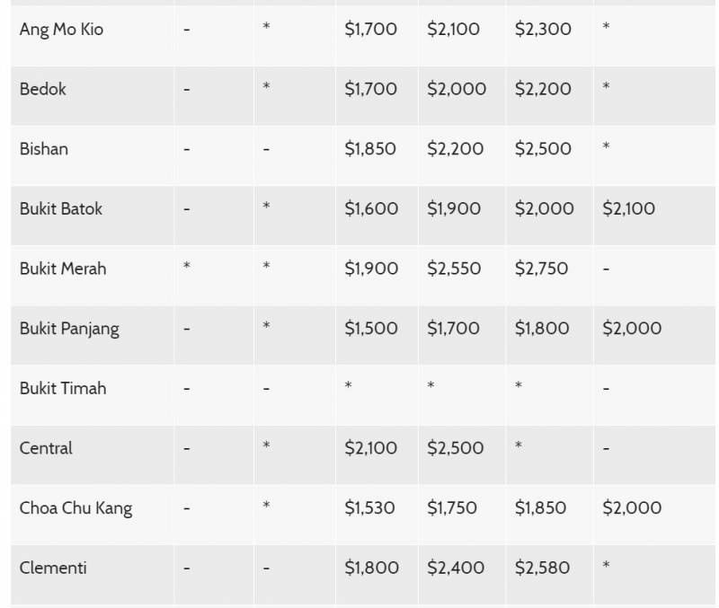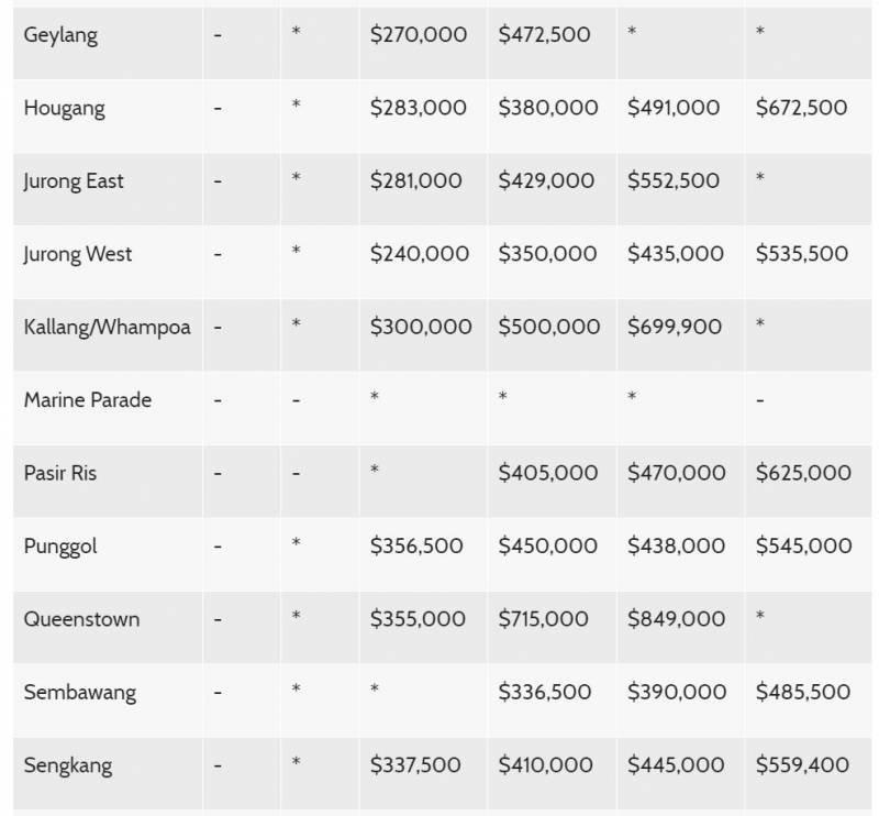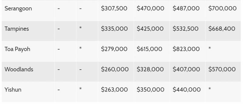 各地区转售组屋价格中位数