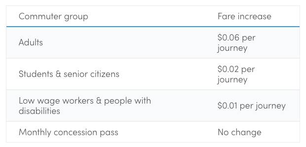 公交和MRT的费用将要上调4.3%