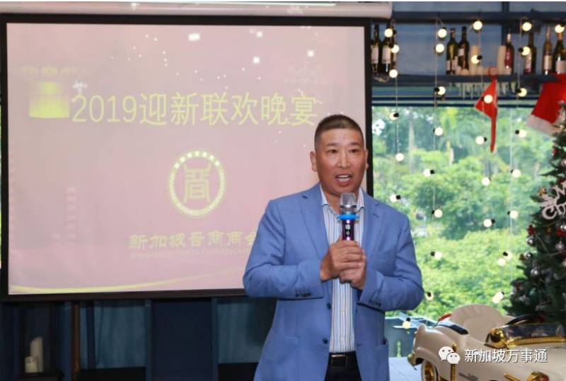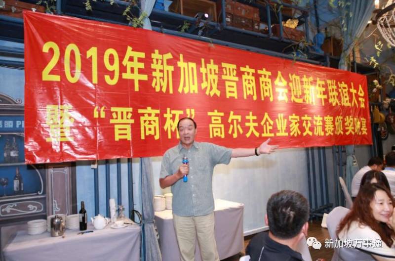 朋友们,今天的晚宴上,我们还要对在此次新加坡“晋商”杯高尔夫企业家邀请赛中的优胜球队及队员颁发总杆和净杆一、二、三等奖,大家将会在美酒佳肴中一睹这些高尔夫优秀队员的风采和英姿。再过几个小时就是2019年了!可以说,今天的晚宴意义非凡,非同往常,既是跨年晚宴,也是颁奖盛会,既是辞旧聚会,还是迎新团拜,再加上各位山西老乡的浓浓乡情和稍后商会会员们献上的歌舞表演,相信一定会给大家留下2019新年伊始最美好的回忆!”