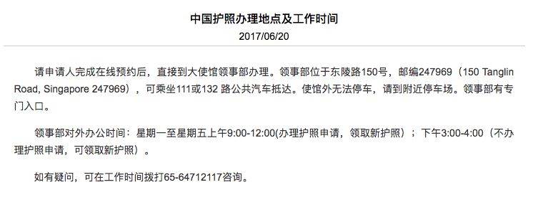 4)办中国护照:在新加坡办中国护照可以网上预约或直接去大使馆
