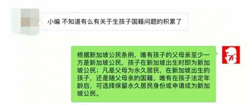 1.在新加坡出生,自动获得新加坡国籍,直至21岁(即使父母另一个是中国人,也不可以获得中国国籍);