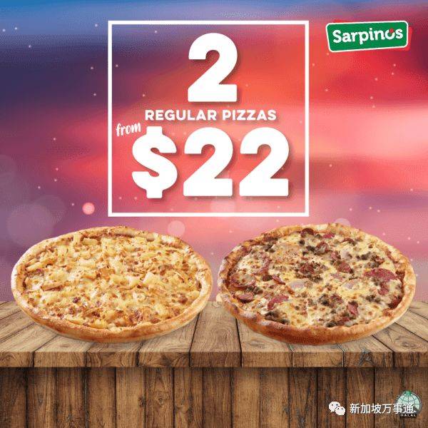 sarpinos两张大披萨只要22新元,不愿意做饭又吃够了食阁,这个周末就吃披萨吧~