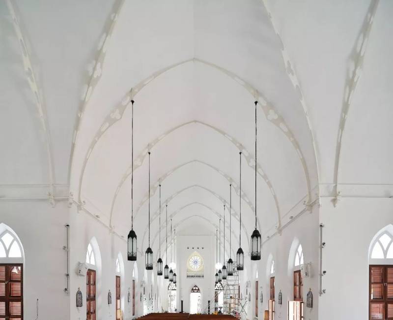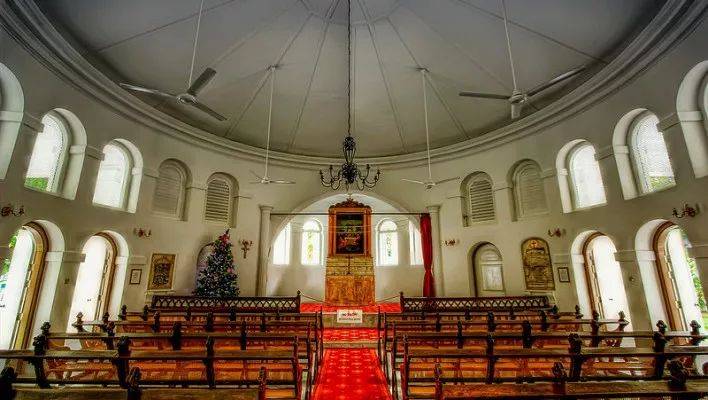 这座教堂从建立伊始,便成为在新加坡的亚美尼亚人活动中心。穿过教堂之外郁郁苍苍的园林景色,走入教堂,便可看见高耸的尖顶,多利斯式的柱子和两旁的栏杆一起构成了白色的门廊。抬头可见拱形的穹顶天花板,这些都是传统的亚美尼亚教堂建筑元素。