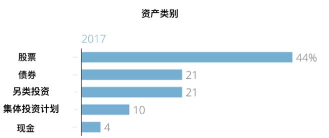 自2016年起,新加坡各种资产类别的配置比例基本保持不变,主要包括股票、债券、另类投资、集体投资计划、现金五大种类。由于经济基本面的改善,2017年资产管理机构对股票的配置从2016年占比42% 增加到2017年的44%,其中对亚太地区和北美地区的股票配置达到32%和6%,对欧洲和世界其他地区的股票配置分别稳定在5%和1%。与此同时,固定收益的投资配比略有减少,从23%降至21%,在所有地区都有大量的资金流出。