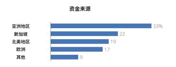由于资产管理机构在亚洲的投资份额巨大,投资者通常会选择新加坡作为进入亚洲资本市场的切入点。2017年,新加坡78% 的资金来自于本国以外的地区,其中33%来自亚太地区(不包括新加坡),19% 来自北美地区,17% 来自欧洲,其余来自世界其他地区。从海外流入新加坡的资金量可以看出,新加坡作为资产管理中心对国际投资者有很强的吸引力。