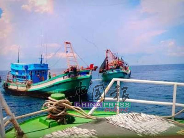 (美里1日讯)闯入美里海域非法捕鱼的2艘越南渔船船员,看到一艘美里渔船船主拿手机拍他们照片,取出长刀挥动更企图追撞本地渔船,猖獗行径令人发指。