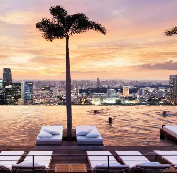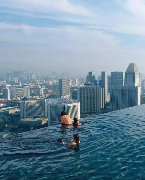 最壮观的城市楼顶“无边界”露天游泳池,就在新加坡Marina Bay Sands的50层高楼顶上!!这个无限泳池的边缘的位置没有任何的突出遮挡物,畅游其中,仿佛身处巨大的瀑布之上,还能俯瞰整个新加坡。