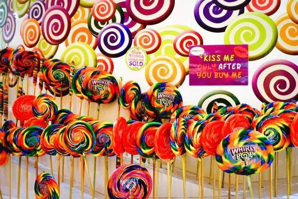 走进圣淘沙的candylicious,仿佛来到了童话里的糖果屋。店外还有几个超大的MM豆玩偶,记得要合影哦~