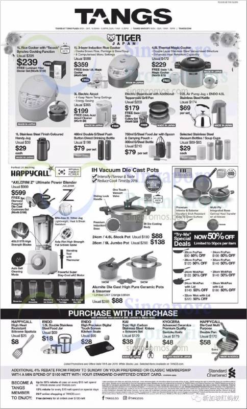 Tangs厨房器具大促销~~公众可用超低价购买厨房器具与其他商品。