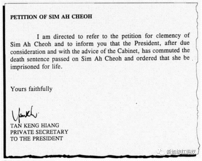 当年总统私人秘书发给沈亚彩律师的特赦信。(海峡时报)